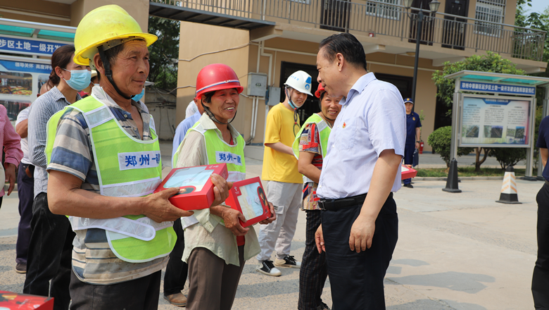 為切實做好防暑降溫工作,給項目工友送去清涼,鄭州市總工會精心準備了夏季防暑降溫用品和礦泉水。市總工會、消防救援支隊領(lǐng)導為一線職工送去防暑降溫用品,慰問看望一線職工,將工會組織的關(guān)懷送到職工心坎上。