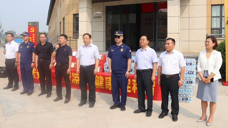 進入夏季以來,持續(xù)出現(xiàn)的高溫天氣,給奮戰(zhàn)在建設一線的施工人員帶來嚴峻考驗,廣大職工不畏酷暑,堅守崗位,辛勤付出。為做好廣大職工的防暑降溫工作,切實保護職工身體健康,6月11日,鄭州市總工會、鄭州市消防救援支隊到鄭州地產(chǎn)集團西流湖公司中原新區(qū)土地一級開發(fā)項目指揮部開展主題為“送清涼、送安全、送健康、促和諧”的夏季送清涼活動。鄭州市一級巡視員、市總工會黨組書記、主席趙新中,市消防救援支隊副支隊長、滅火救援指揮部部長李隆,市總工會副主席宋少丹,鄭州地產(chǎn)集團有限公司監(jiān)事會主席、工會主席李靜波及西流湖公司黨支部書記、董事長、總經(jīng)理吉獻亮等領(lǐng)導出席活動。活動由西流湖公司副總經(jīng)理昌磊主持。