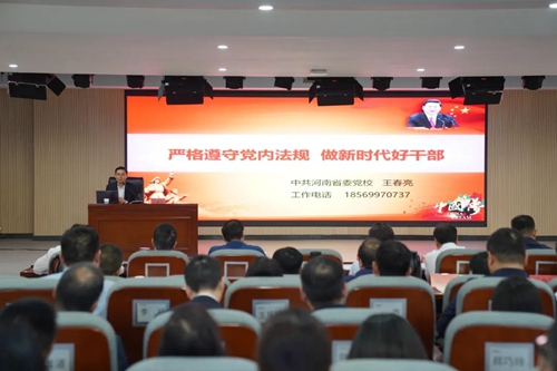 集團黨委邀請河南省委黨校中共黨史教研部王春亮副教授,以《嚴格遵守黨內法規(guī) 做新時代好干部》為題展開宣講。王教授分別從紀律嚴明是黨的光榮傳統(tǒng)和獨特優(yōu)勢、黨員干部嚴格遵守黨內法規(guī)的迫切性和做嚴守黨內法規(guī)好干部的主要著力點三個方面宣講,號召全體黨員干部要以黨紀學習教育為契機,上好黨性鍛煉“必修課”。