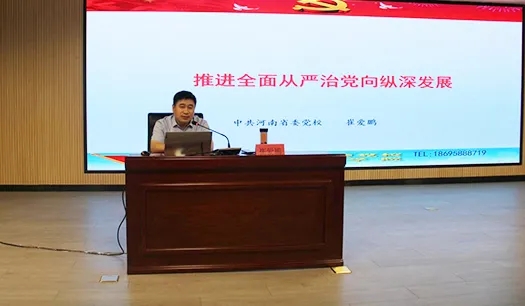 隨后,河南省委黨校崔愛鵬教授作了題為《推進全面從嚴(yán)治黨向縱深發(fā)展》的專題培訓(xùn)。培訓(xùn)中,崔愛鵬教授從深刻理解新時代全面從嚴(yán)治黨向縱深發(fā)展的重大意義、全面把握新時代黨的建設(shè)的總要求、貫徹落實習(xí)近平總書記關(guān)于全面從嚴(yán)治黨的重要論述三個方面進行了全面剖析和深入解讀,以史實為依據(jù),深入淺出,娓娓道來,使大家充分認(rèn)識到,“嚴(yán)”是立黨的初心品質(zhì),是治黨的鮮明特色,也是強黨的經(jīng)驗優(yōu)勢。堅持從嚴(yán)治黨,更是我們黨克服一切艱難險阻、完成歷史使命的重要政治優(yōu)勢,為集團學(xué)習(xí)黨史、了解黨史,進一步做好黨風(fēng)廉政建設(shè)和作風(fēng)建設(shè)工作提供了指南。