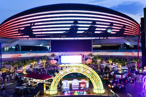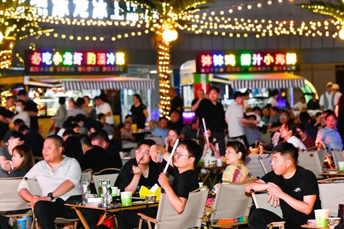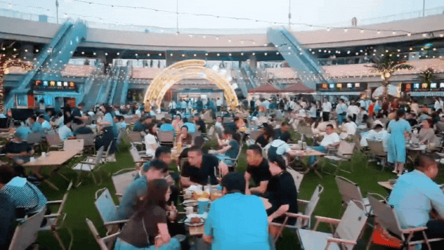 熠熠星光耀向夜空,呼應(yīng)著霓虹閃爍的奧體中心,飄散的煙火氣和美食的香氣充斥著整個(gè)下沉空間,舞臺音樂節(jié)奏歡快、火爆酷炫,在霓虹交錯(cuò)的空間里,一天的時(shí)間仿佛被夜市拉長,這是年輕人帶給這座城市的無限活力。
