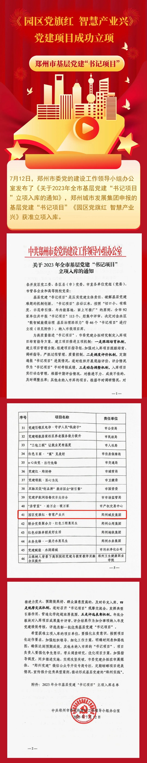 該項“書記項目”主要致力于推動黨建與產業(yè)園建設、招商和運營的深度融合,充分發(fā)揮黨建引領作用,切實為園區(qū)企業(yè)提供“一站式”的黨建服務、政務服務、創(chuàng)新創(chuàng)業(yè)服務、社會生活服務等,為企業(yè)發(fā)展增效賦能,推動產業(yè)園黨組織和黨的工作覆蓋更加有效、體制機制更加科學、黨組織建設更加規(guī)范、黨員教育管理更加精準、基層黨組織保障更加有力,園區(qū)黨建品牌更加響亮,示范作用更加凸顯,形成具有國企特色、符合鄭州實際的產業(yè)園黨建工作舉措,以高質量黨建引領和賦能園區(qū)高質量發(fā)展,致力打造在全省、全市具有標桿作用和示范效應的“黨建+產業(yè)園”新名片。