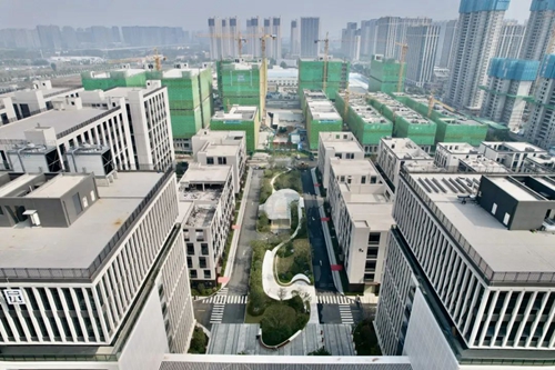 園區(qū)秉承對品質(zhì)的堅(jiān)守,改進(jìn)施工工藝,提高建造效率,施工建設(shè)全速展開,沿著藍(lán)圖軌跡一步步勾勒出企業(yè)理想家的美好輪廓。