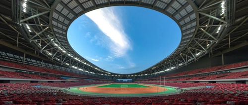 鄭州奧體中心體育場采用了“三角形巨型桁架+立面桁架+網(wǎng)架+大開口車輻式索承網(wǎng)格”的組合結(jié)構(gòu)體系設(shè)計(jì)。82米跨三角形巨型桁架,重量達(dá)1300噸,為同類之最;大開口車輻式索承網(wǎng)格結(jié)構(gòu)為全球最大懸挑,設(shè)計(jì)最大懸挑54.1米,其中,環(huán)向密封拉索直徑為130毫米、單個索夾重達(dá)6.5噸,均為國內(nèi)之最。項(xiàng)目整體形成的《鄭州奧體中心綜合建造技術(shù)》,成果總體達(dá)到國際先進(jìn)水平。