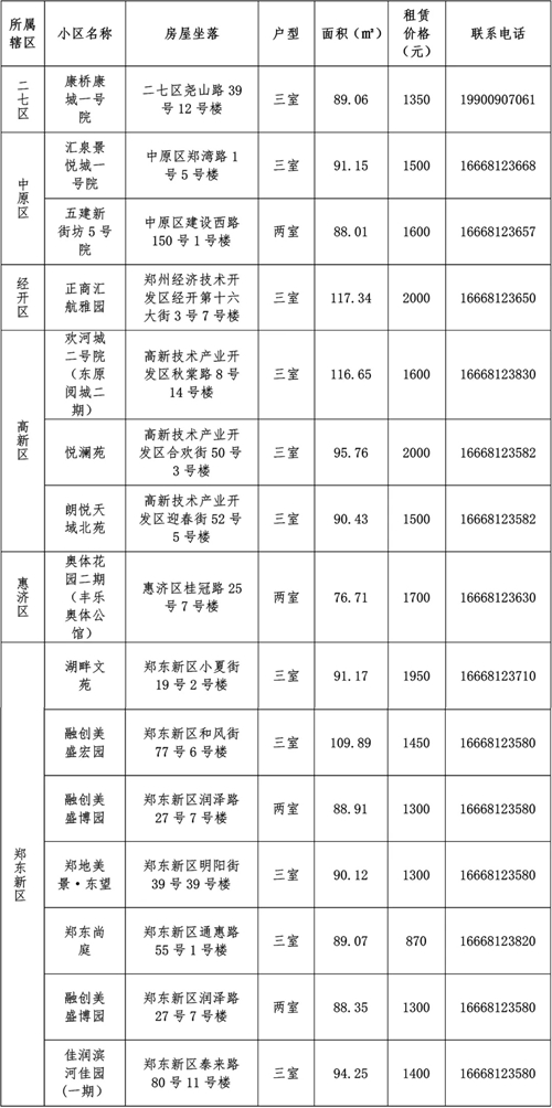 本批次配租房源共計(jì)15套(41間),其中為二七區(qū)1套(3間)、中原區(qū)2套(5間)、經(jīng)開區(qū)1套(3間)、高新區(qū)3套(9間)、惠濟(jì)區(qū)1套(2間)、鄭東新區(qū)7套(19間)。水電費(fèi)均為民用水電標(biāo)準(zhǔn),房源精裝修交付,周邊配套設(shè)施齊全,配備家具家電,拎包入住,后續(xù)房源將根據(jù)裝修進(jìn)度情況陸續(xù)配租,具體以系統(tǒng)實(shí)際上線為準(zhǔn)。