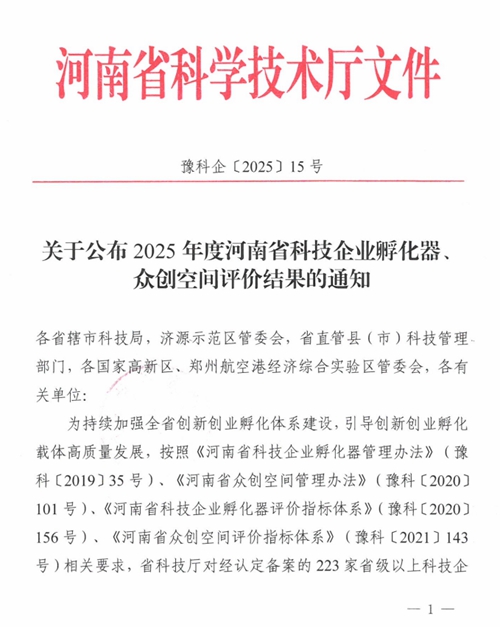 近日,河南省科學(xué)技術(shù)廳正式發(fā)布《關(guān)于公布2025年度河南省科技企業(yè)孵化器眾創(chuàng)空間評(píng)價(jià)結(jié)果的通知》(豫科企〔2025〕15號(hào)),鄭州城發(fā)集團(tuán)金岱智慧產(chǎn)業(yè)園憑借扎實(shí)的孵化服務(wù)能力、突出的創(chuàng)新培育成效,在全省223家省級(jí)以上科技企業(yè)孵化器的嚴(yán)格考評(píng)中脫穎而出,榮獲最高考核等級(jí)——“優(yōu)秀(A類(lèi))”!