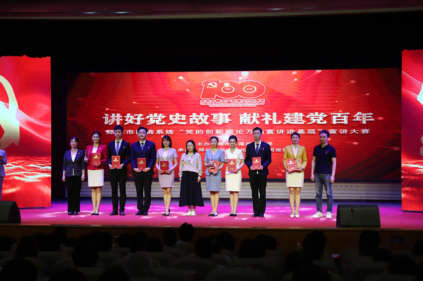 為慶祝中國共產(chǎn)黨成立100周年, 扎實(shí)開展黨史學(xué)習(xí)教育, 5月26日上午,鄭州市國資系統(tǒng)“講好黨史故事·獻(xiàn)禮建黨百年”——“黨的創(chuàng)新理論萬場(chǎng)宣講進(jìn)基層”宣講大賽在市總工會(huì)一樓職工大禮堂圓滿落下帷幕。來自市國資系統(tǒng)14家單位選送的15個(gè)宣講節(jié)目進(jìn)入大賽決賽,鄭州地產(chǎn)集團(tuán)選送的西流湖公司黨支部宣講節(jié)目《百年交響》榮獲三等獎(jiǎng)。