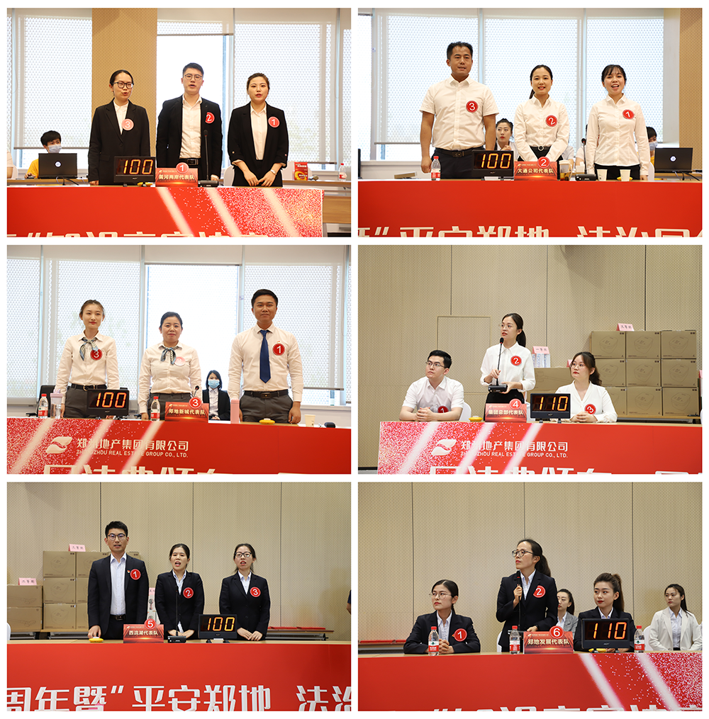 地產(chǎn)集團(tuán)總部及10家子公司廣泛參與,本次競(jìng)賽共有12支隊(duì)伍報(bào)名參賽。經(jīng)過(guò)緊張激烈的預(yù)賽比拼,最終有6支隊(duì)伍突出重圍,進(jìn)入決賽。決賽賽程分為必答題、爭(zhēng)分奪秒題、搶答題、挑兵點(diǎn)將題、風(fēng)險(xiǎn)題五個(gè)環(huán)節(jié),圍繞民法典、平安建設(shè)、精神文明建設(shè)等內(nèi)容開展競(jìng)賽答題活動(dòng)。答題環(huán)節(jié),各代表隊(duì)展現(xiàn)出了精湛的理論素養(yǎng)、扎實(shí)的法律功底、靈活的應(yīng)變能力和精誠(chéng)合作的團(tuán)隊(duì)精神,精彩的表現(xiàn)贏得現(xiàn)場(chǎng)觀眾的陣陣掌聲。經(jīng)過(guò)幾個(gè)環(huán)節(jié)激烈的角逐,最終地產(chǎn)集團(tuán)西流湖公司代表隊(duì)摘得桂冠。
