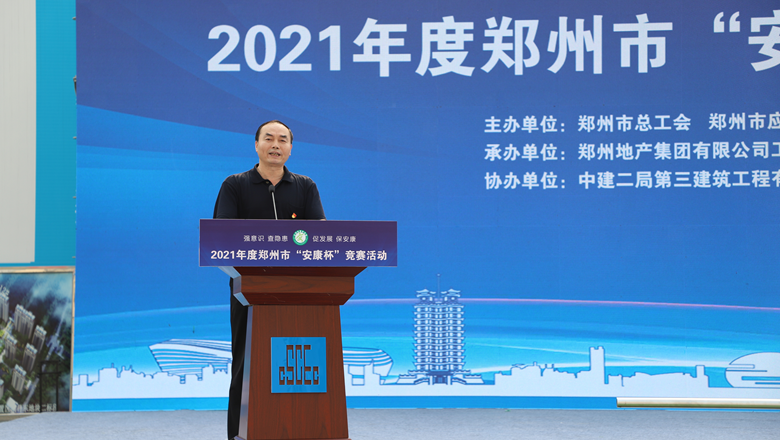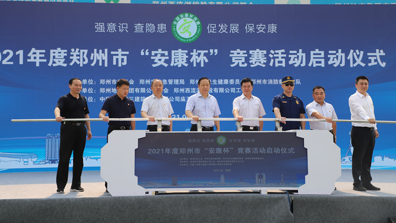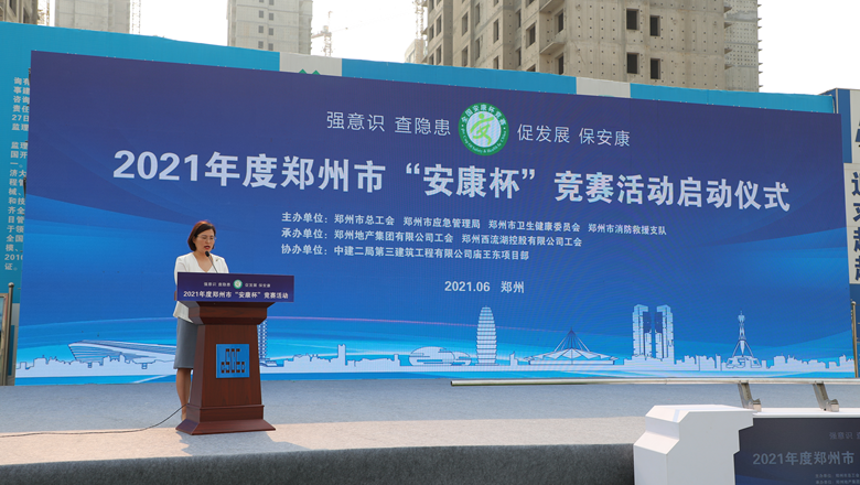 為深入貫徹落實習近平總書記有關加強安全生產(chǎn)工作的部署和要求,進一步強化各級各部門、各企業(yè)主體的安全責任意識,確保我市安全生產(chǎn)形勢持續(xù)好轉,職工安全健康不斷鞏固。6月11日上午,由鄭州市總工會、鄭州市應急管理局、鄭州市衛(wèi)生健康委員會及鄭州市消防救援支隊主辦,鄭州地產(chǎn)集團工會、鄭州西流湖控股有限公司工會承辦的鄭州市2021年“安康杯”競賽啟動儀式在中原新區(qū)廟王東安置區(qū)項目成功舉行。鄭州市相關組織部門、市總工會成員單位、地產(chǎn)集團、西流湖公司、各參建單位共200余人參加啟動儀式。鄭州市一級巡視員,市總工會黨組書記、主席趙新中、鄭州市衛(wèi)生健康委員會黨組成員、二級調研員楊德林、鄭州市應急管理局三級調研員安春茂、鄭州市消防救援支隊副支隊長、滅火救援指揮部部長李隆、鄭州市總工會副主席宋少丹、鄭州地產(chǎn)集團有限公司監(jiān)事會主席、工會主席李靜波、鄭州地產(chǎn)集團西流湖公司黨支部書記、董事長、總經(jīng)理 吉獻亮,中建二局第三建筑工程有限公司西北分公司黨委副書記、執(zhí)行總經(jīng)理趙海軍出席儀式。啟動儀式由市總工會勞動和經(jīng)濟部部長宋慧主持。