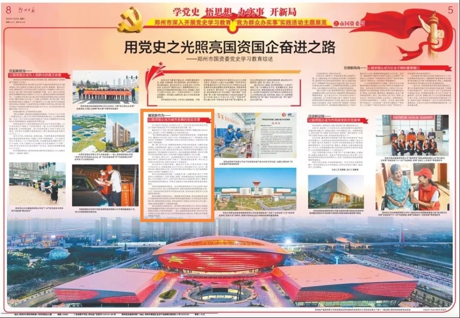 剛剛過去的2021年是我們黨建黨一百周年。在建黨百年的重要時(shí)刻,黨中央深謀遠(yuǎn)慮,鑒往知來,在全黨深入開展黨史學(xué)習(xí)教育活動(dòng),從百年黨史中汲取新時(shí)代趕考路的智慧和力量。1月25日,鄭州市深入開展黨史學(xué)習(xí)教育“我為群眾辦實(shí)事”實(shí)踐活動(dòng)主題展覽之市國資委篇《用黨史之光照亮國資國企奮進(jìn)之路--鄭州市國資委黨史學(xué)習(xí)教育綜述》被《鄭州日報(bào)》刊發(fā)、《人民日報(bào)》客戶端轉(zhuǎn)載。